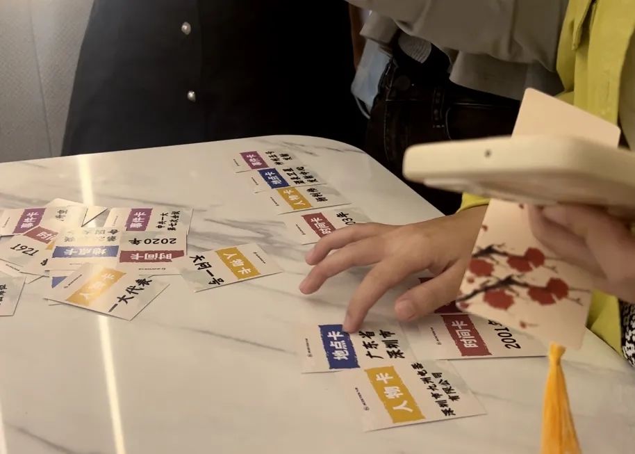 “后皇嘉樹,橘?gòu)品狻J苊贿w,生南國(guó)兮”屈原托物言志,抒發(fā)愛國(guó)之情;本環(huán)節(jié)深九家人們通過在眾多時(shí)間、地點(diǎn)、人物、事件的卡片中讓歷史中動(dòng)人的大事記重現(xiàn)。激發(fā)大家銘記歷史、不忘初心的愛國(guó)熱情和報(bào)國(guó)之志。