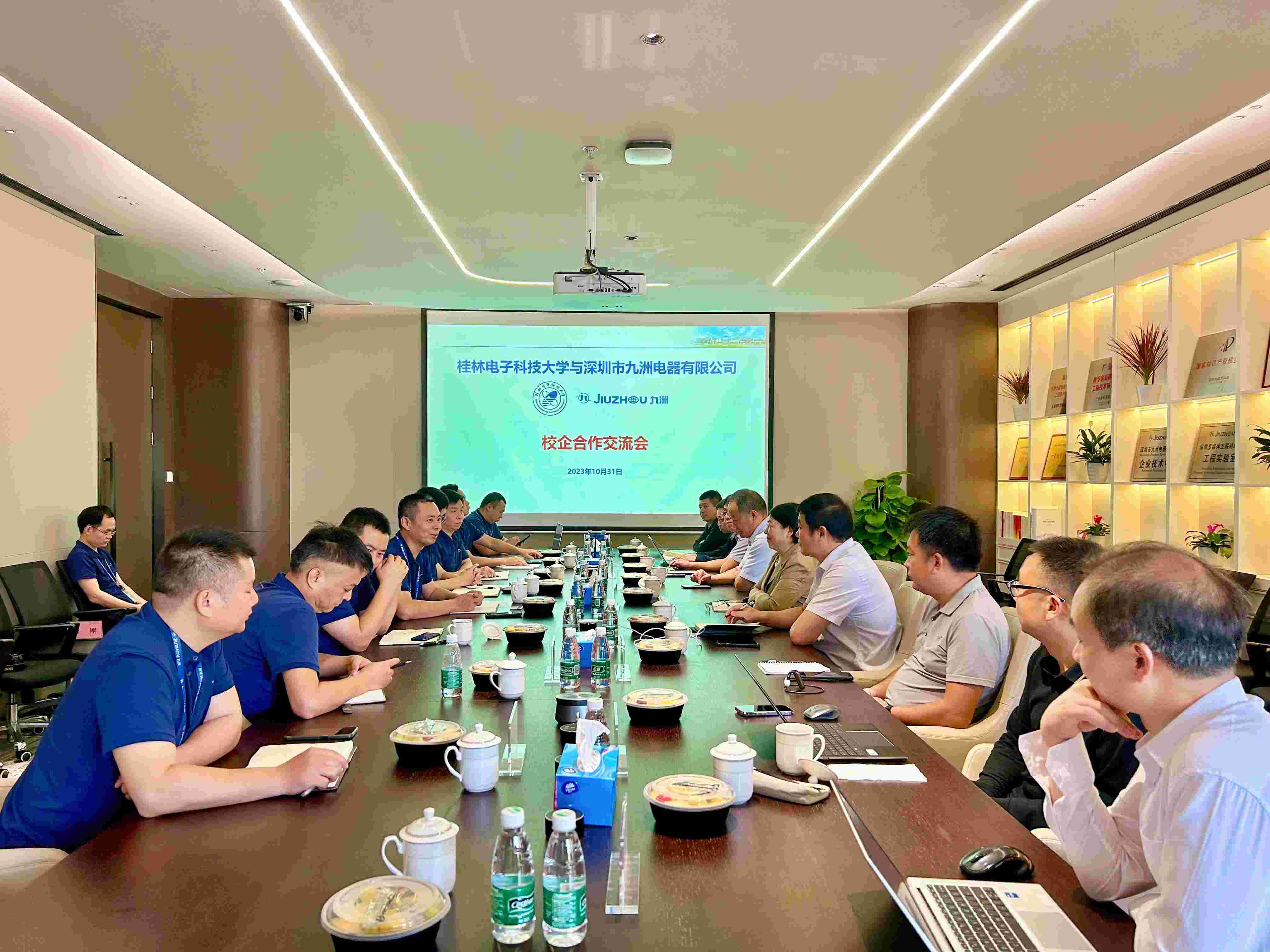 為加強(qiáng)校企合作交流,實(shí)現(xiàn)校企優(yōu)勢(shì)互補(bǔ)、資源共享,探索產(chǎn)教融合新模式,10月31日上午,桂林電子科技大學(xué)副校長周婭一行蒞臨深圳市九洲電器有限公司參觀調(diào)研,并就“校企合作、產(chǎn)教融合”展開深入交流。公司總經(jīng)理韓高典、副總經(jīng)理石旭科、夏兵及桂電校友代表參加了接待交流。