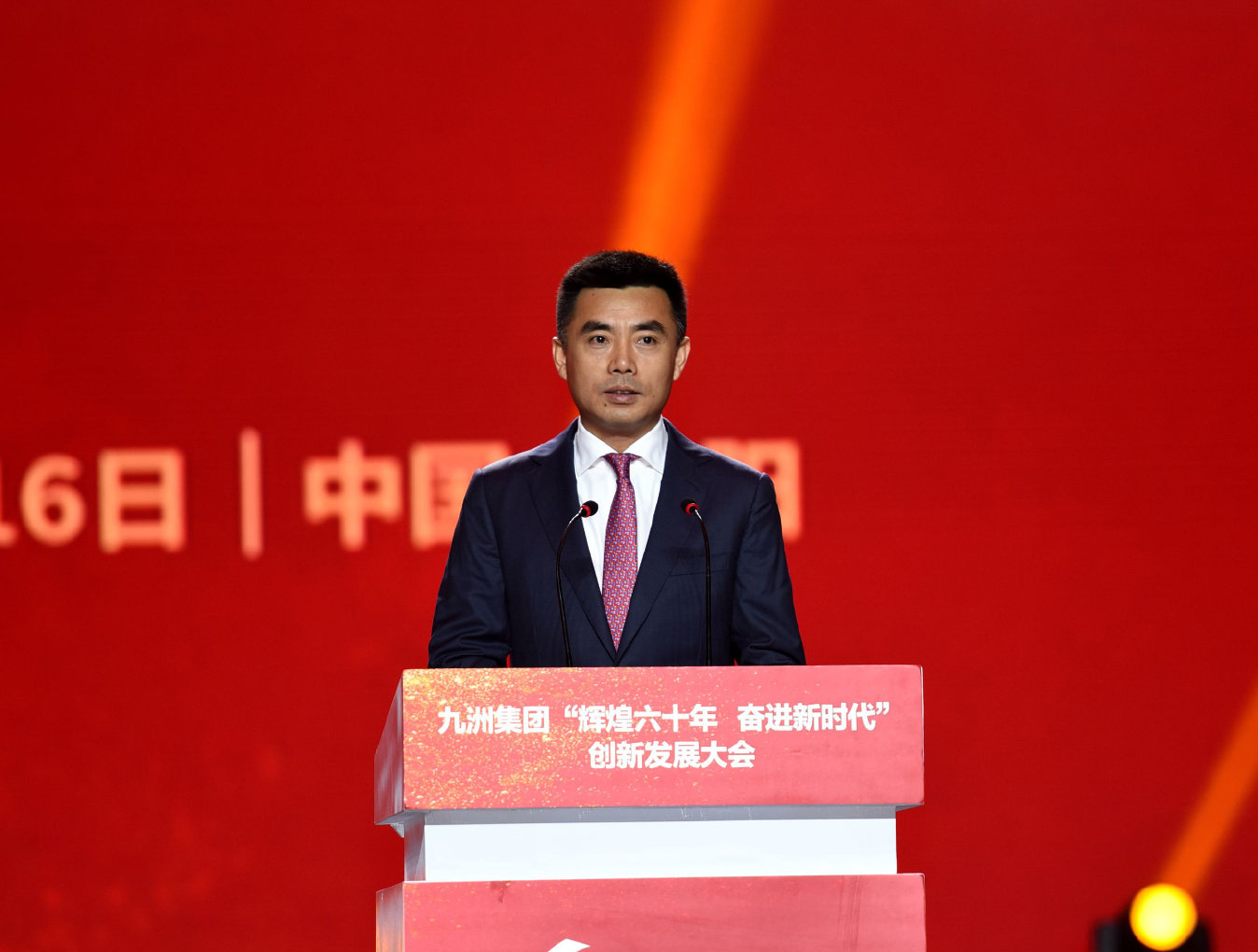 隨后,杜力平發(fā)表了題為《輝煌六十年,奮進(jìn)新時代,實現(xiàn)“351”目標(biāo)》的主題演講,發(fā)布了九洲未來發(fā)展戰(zhàn)略: