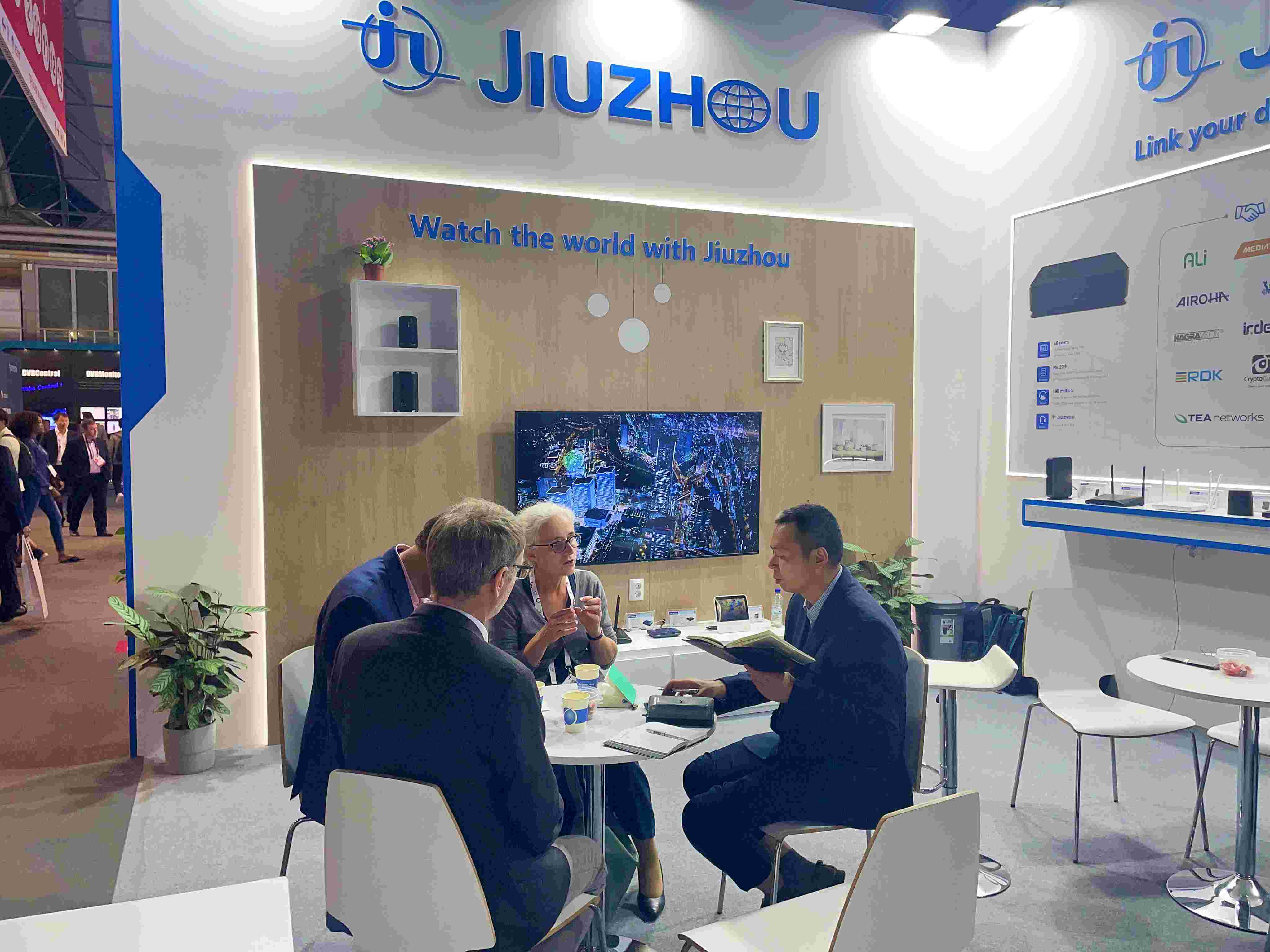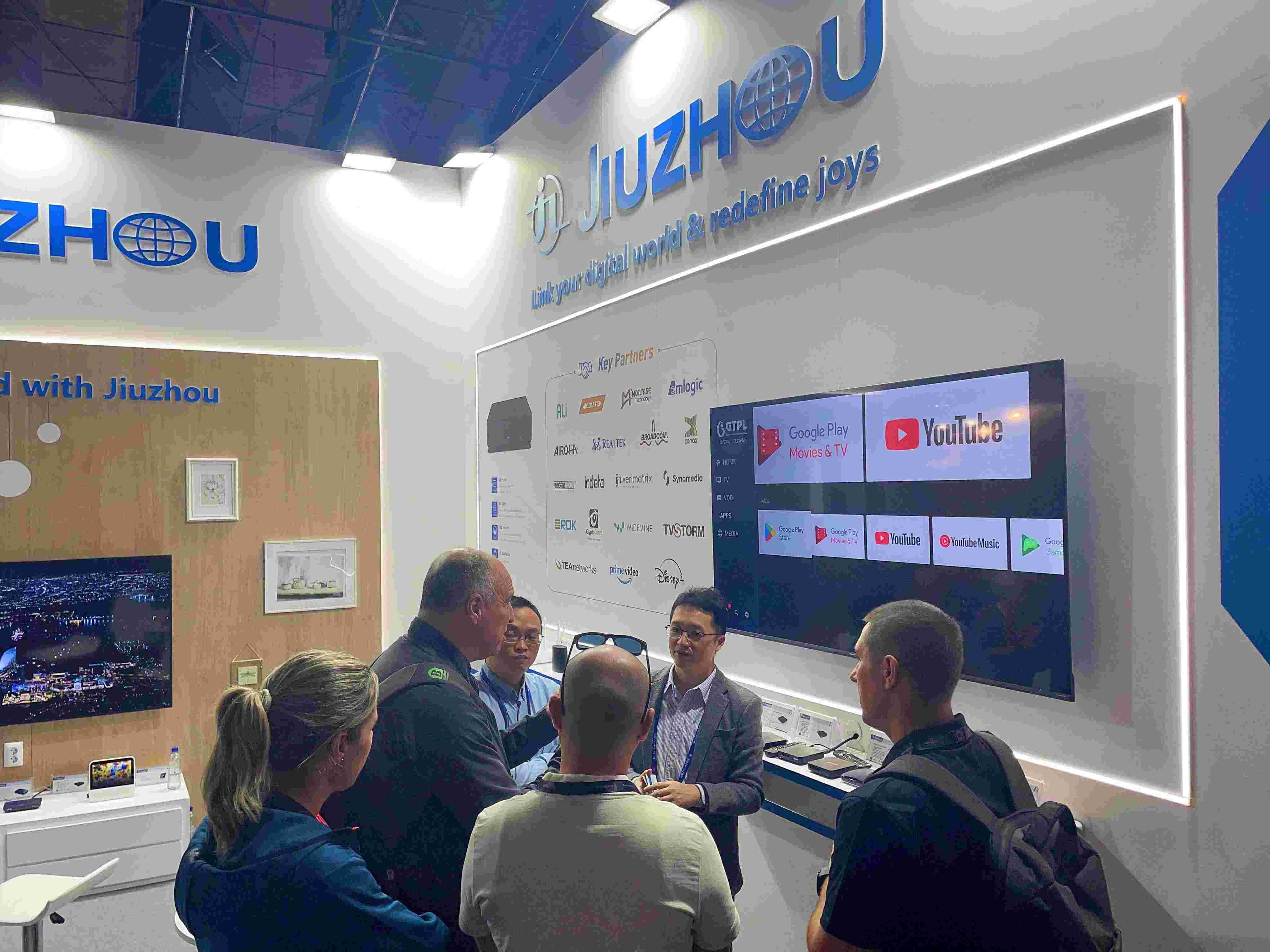 深圳九洲電器作為全球領(lǐng)先的數(shù)字音視頻融合智能終端提供商,本次展會(huì)公司總經(jīng)理韓高典親自帶隊(duì)遠(yuǎn)赴荷蘭,參展的產(chǎn)品不僅有Android TV 智能機(jī)頂盒,RDK機(jī)頂盒,5G CPE,WiFi-6路由器等專業(yè)級(jí)數(shù)字終端產(chǎn)品,還有8k超高清機(jī)頂盒和智能音箱等新品亮相,向廣大觀眾展示了多維度、多功能的智慧融合終端解決方案。