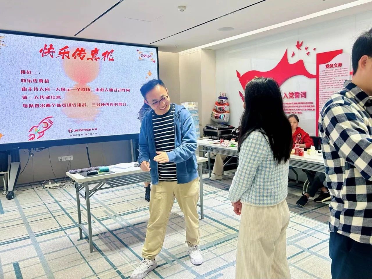 到了緊張刺激、歡樂不斷的共創(chuàng)環(huán)節(jié),壽星們分成了“新文化”和“新訂單”兩個隊伍,挑戰(zhàn)了“新年啟新聲”、“愛拼才會贏”、“快樂傳真機”三個小游戲。不僅考驗集體反應(yīng)能力,還考驗大家的團隊配合,讓大家在游戲中感悟凝心聚力的重要性。