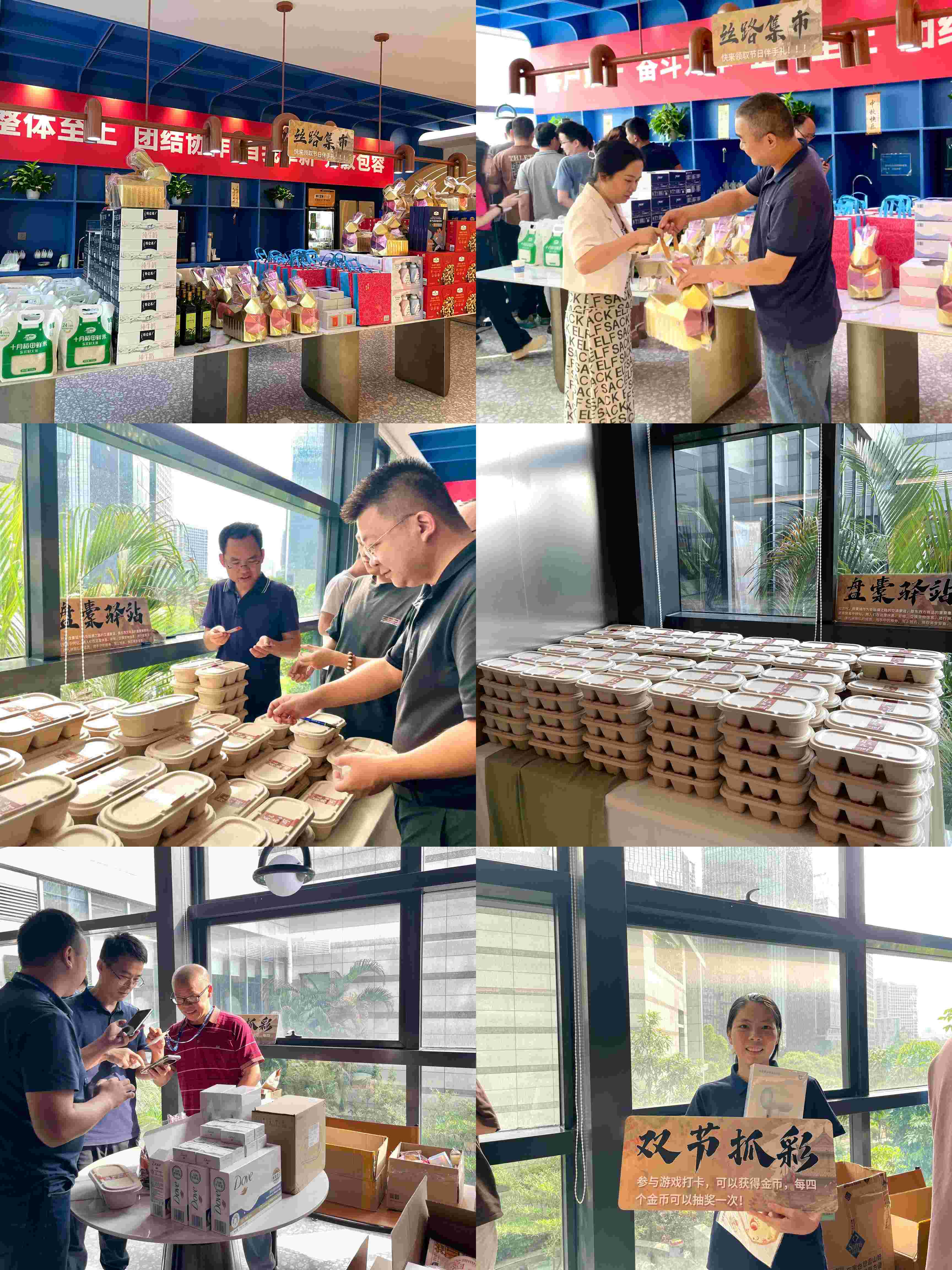 在絲路集市,同事們領(lǐng)取專屬伴手禮,同時(shí),也用闖關(guān)獲得的游戲幣,進(jìn)行抽獎(jiǎng),驚喜連連,笑聲不斷。