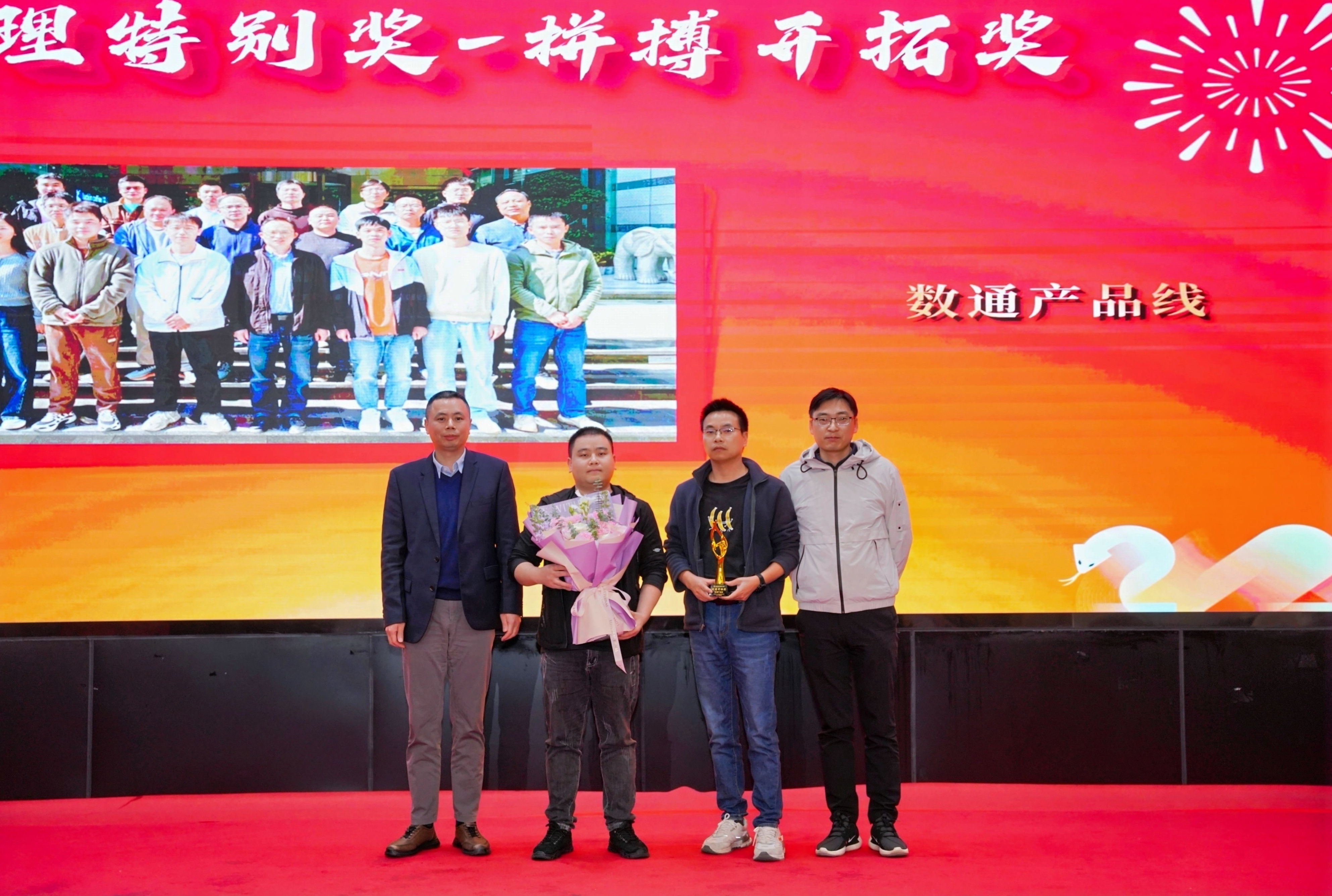 在本年度的總經(jīng)理特別獎中,韓總為數(shù)通產(chǎn)品線頒發(fā)了拼搏開拓獎,對數(shù)通產(chǎn)品線從0到1的突破表示肯定,并激勵團隊為數(shù)通業(yè)務發(fā)展繼續(xù)奮勇前進,堅定了公司對數(shù)通業(yè)務的發(fā)展信心。