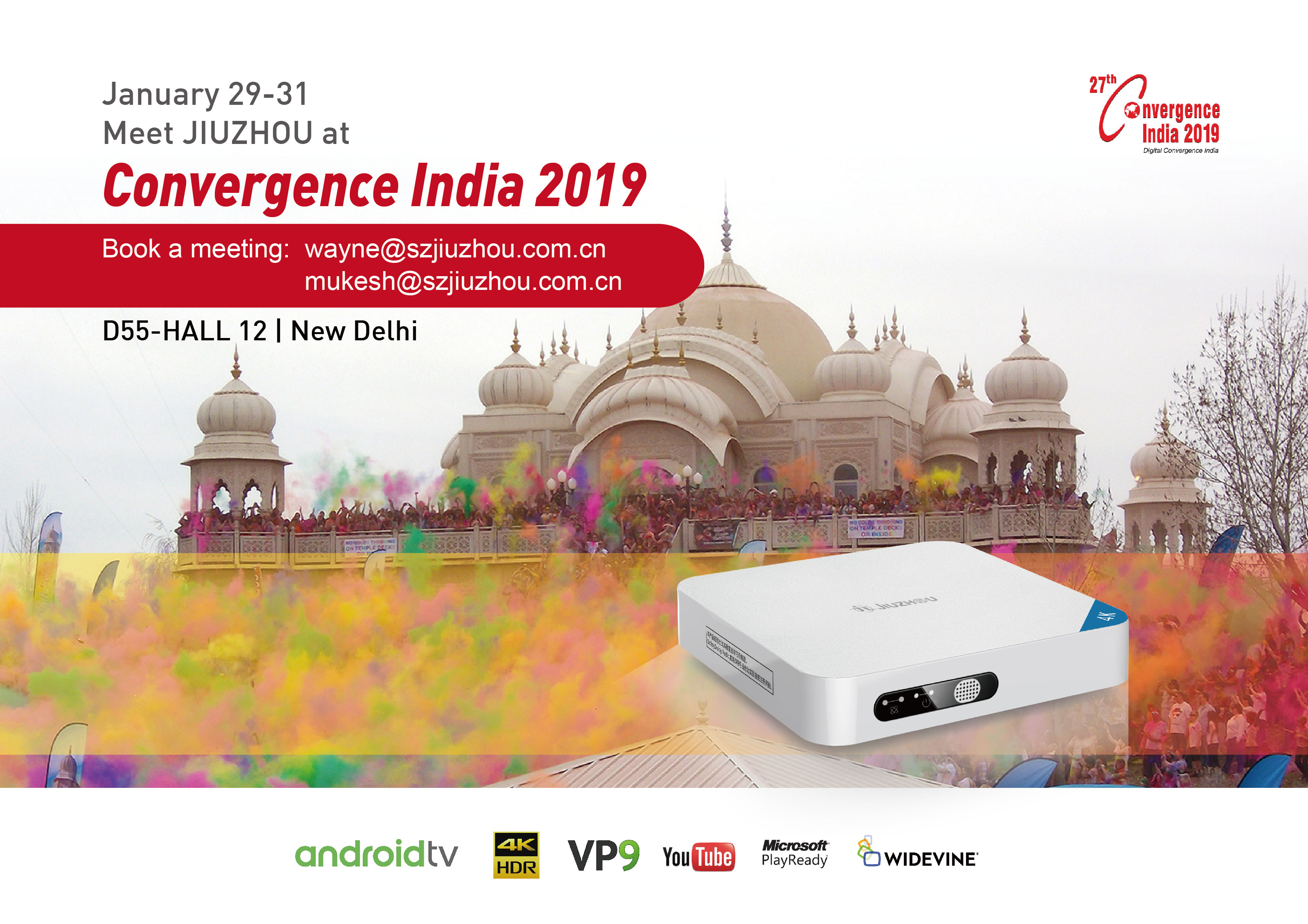 2019年第27屆印度國際通訊博覽會將于1月29-31日在新德里·國際展覽會議中心隆重舉辦。屆時(shí),深圳九洲電器將展示最新機(jī)頂盒產(chǎn)品與智慧家居系統(tǒng),歡迎各界人士蒞臨展位洽談。
